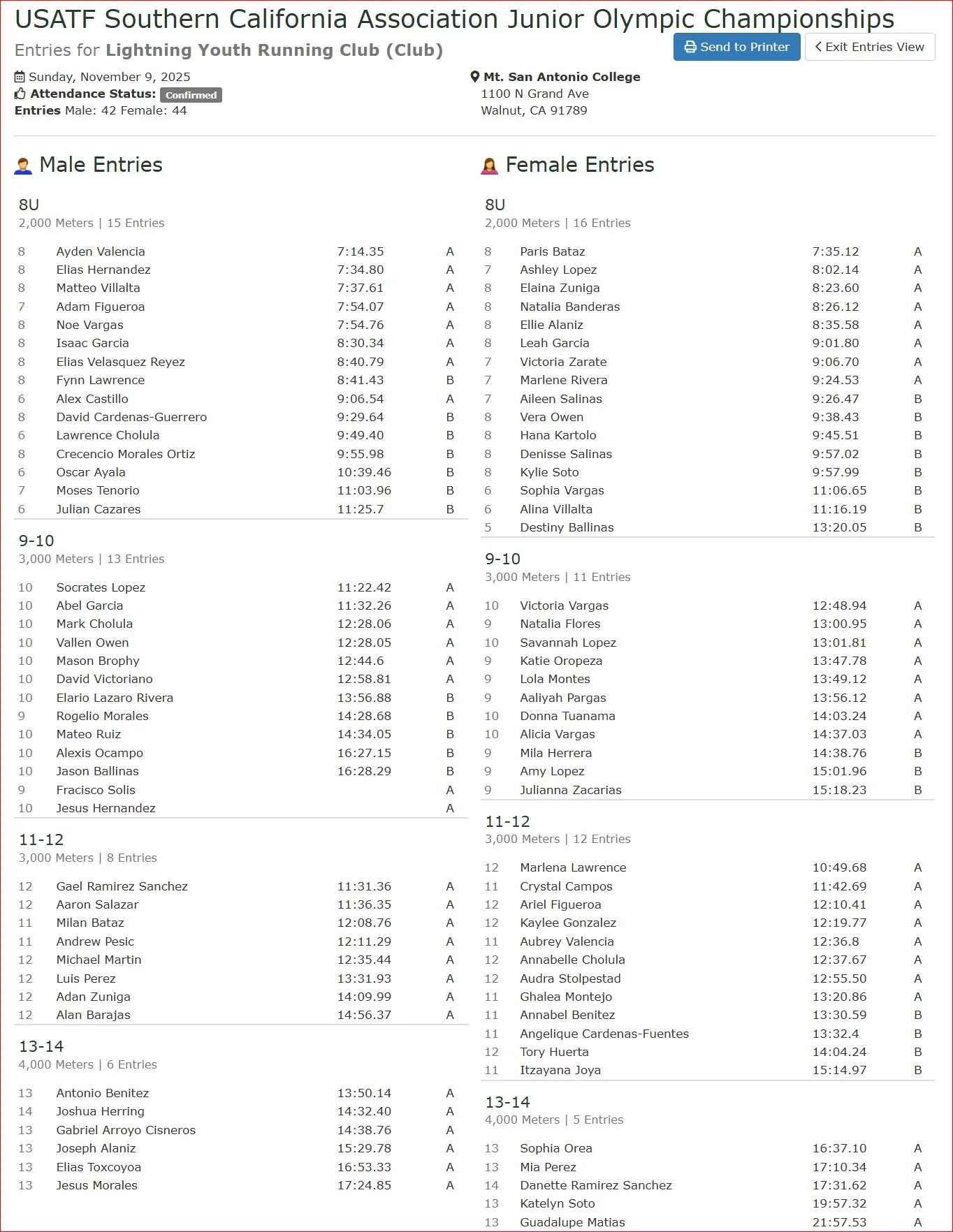 Please make sure your runner is on the final roster. If your runner wants to race and if not in this list, please talk to coach Cholula ASAP.