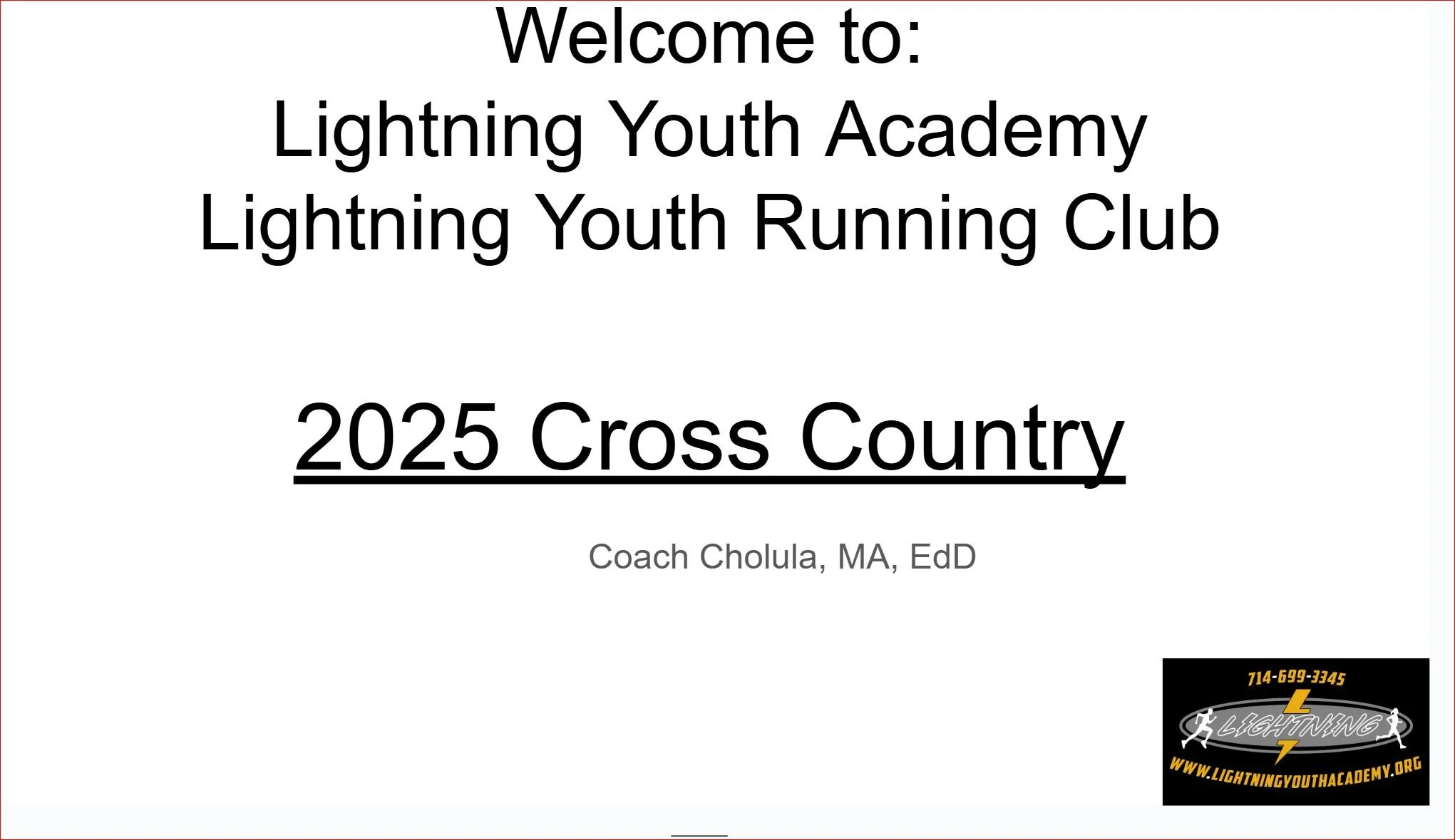 The purpose of this journal is for the emotional and mental wellness of our Lightning runners. We have noticed that athletes who complete this journal helps them stay focus, stay on track with their goals and helps them stay motivated throughout our season. More instructions and details included at the top: https://docs.google.com/forms/d/e/1FAIpQLScKsjGqZ3b0SnYaWuXrnkzF5-VVbJWceDZY0jxAXuCW-S5zmQ/viewform?usp=dialog